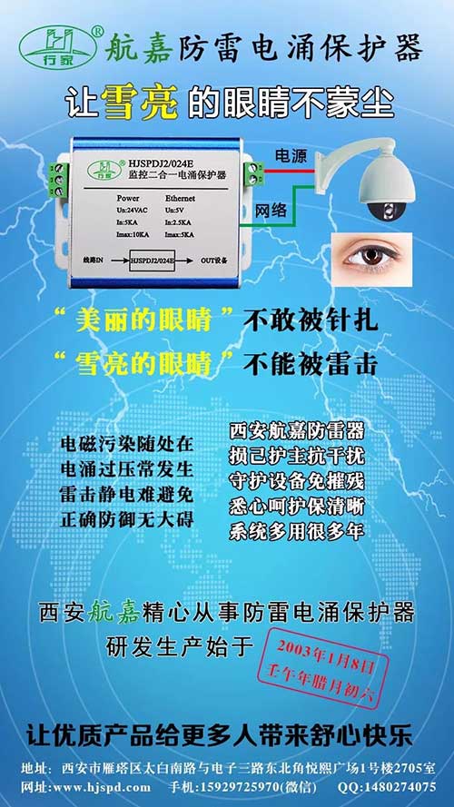 西安<航嘉>监控二合一电涌保护器防雷产品广泛应用于智慧城市,雪亮工程。
