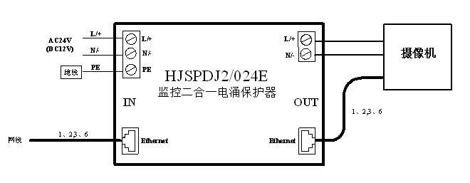 HJSPDJ2/024E监控二合一电涌保护器主要用于高清摄像机、网络摄像机的电源、网络系统的全方位保护,是一体化多功能电涌保护器。适用于对摄像机的电源(AC24V或DC12V)、网络线路实施电涌保护,它具有通流容量大、限制电压低、响应速度快,安装方便等特点,可充分保护最新技术的监控设备。