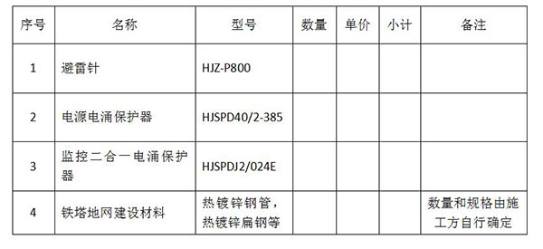 4. 防雷接地参考配置清单:
